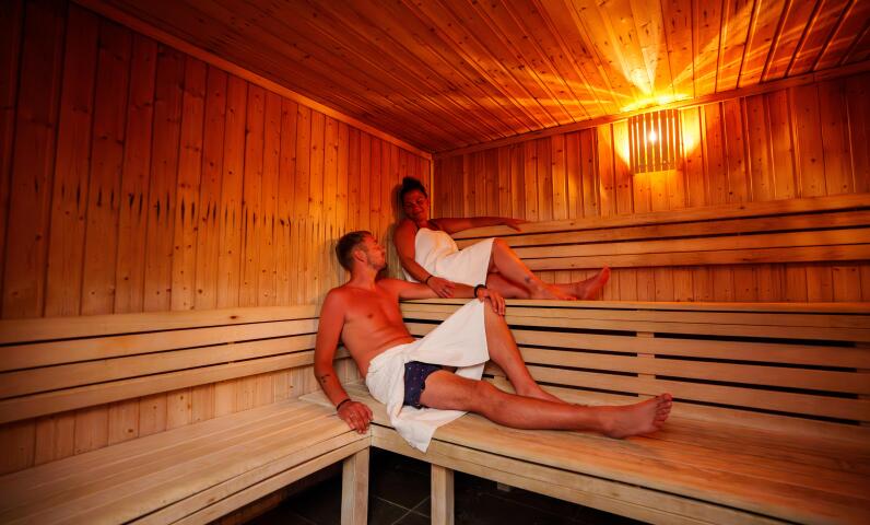 Do you want to enjoy a real moment of relaxation during your stay? At our campsite in Saint-Jean-de-Monts in Vendée, enjoy a real moment of relaxation in a preserved natural environment, between the immensity of the forest and the proximity of the ocean. Our establishment equipped with a wellness area in Vendée opens its doors to you for an unforgettable relaxing getaway: sauna, hammam, jacuzzi, and a heated pool are there to soothe your mind and body. While the youngest ones have fun on the slides and in the water games, treat yourself to a moment just for you, in a warm, gentle, and revitalizing atmosphere.