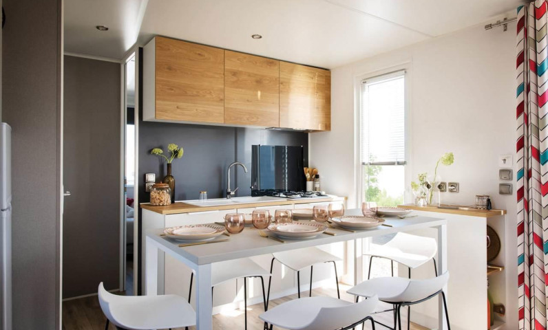 Lits faits à votre arrivée dans l'hébergement, ménage de fin de séjour pris en charge par le camping, linge de maison fourni, location d'équipements...